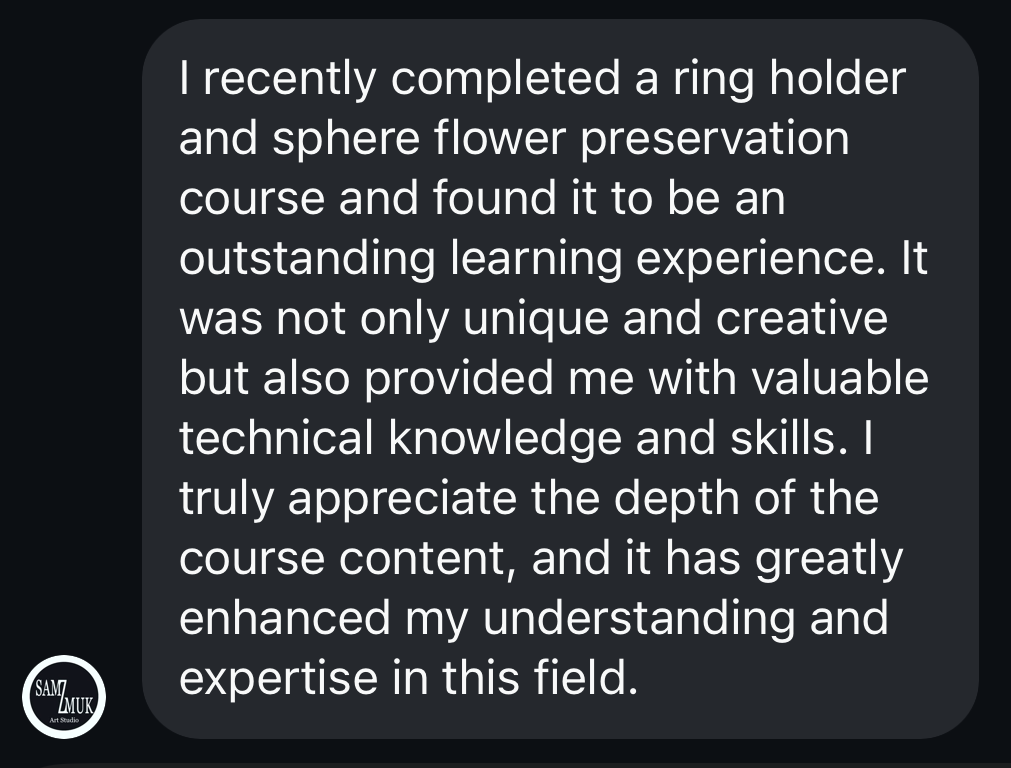 “Since I don’t like to waste time and money on endless materials for “trial and terror” 😉, I went straight to the source of all knowledge when it comes to flower preservation which is @marinamakesart. So glad she decided to release an online course and share all her knowledge with us 😃💕🌷 I had so much fun learning from Marina and was able to jump right into creating with confidence. So I highly recommend it to anyone who is thinking about learning this craft. I know there is plenty of room for improvement regarding the layout of my flowers but such things develop over time. I’m loving the overall results and I hope you guys do to 😃🌹🙃🌺”