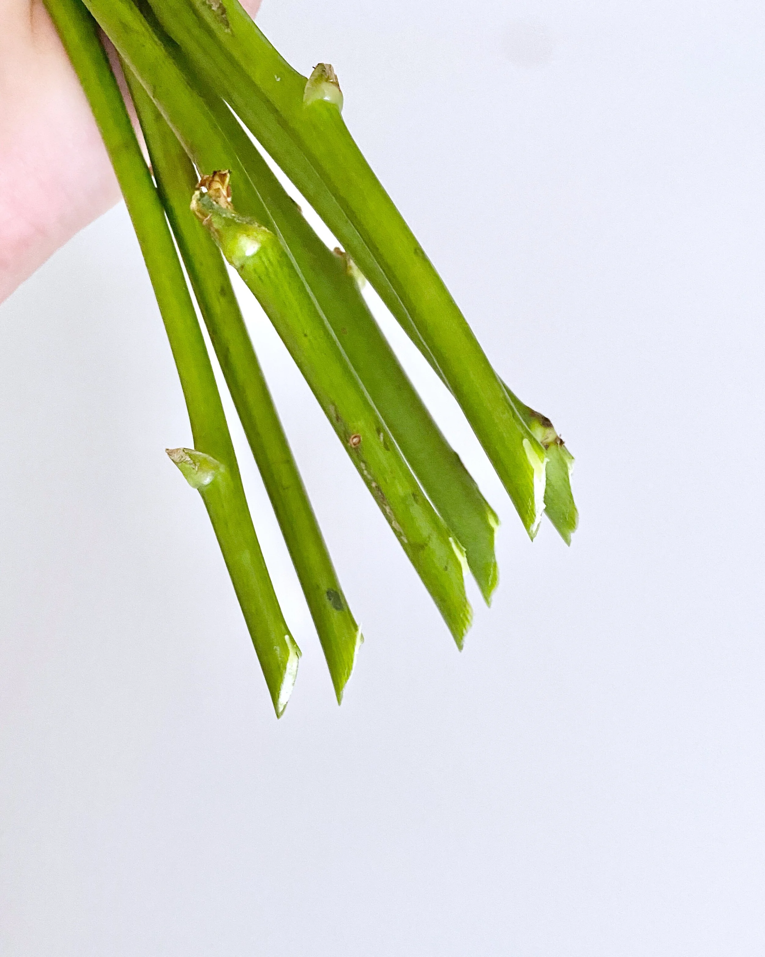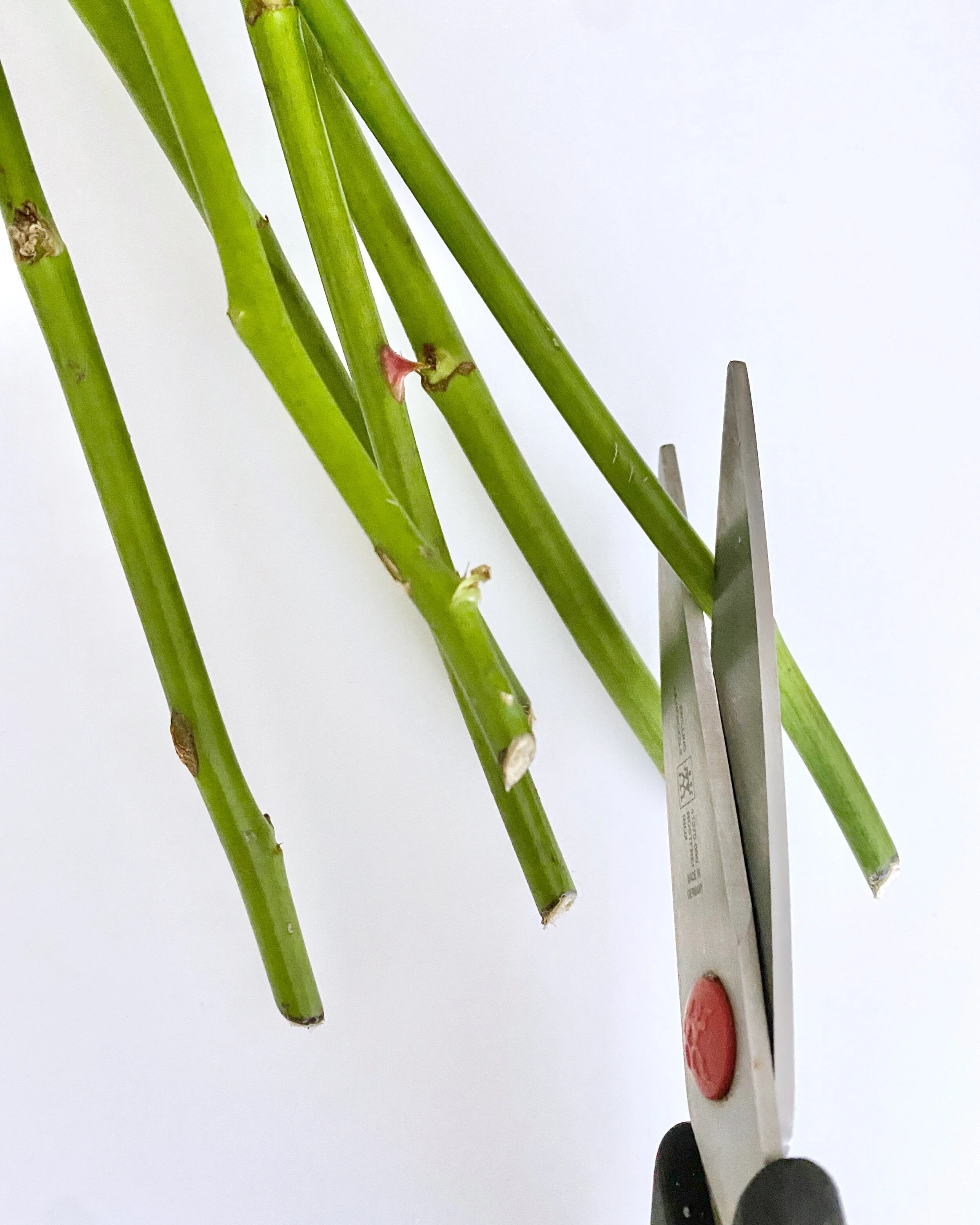 Trim the stems of your bouquet, cutting the ends at a slant.