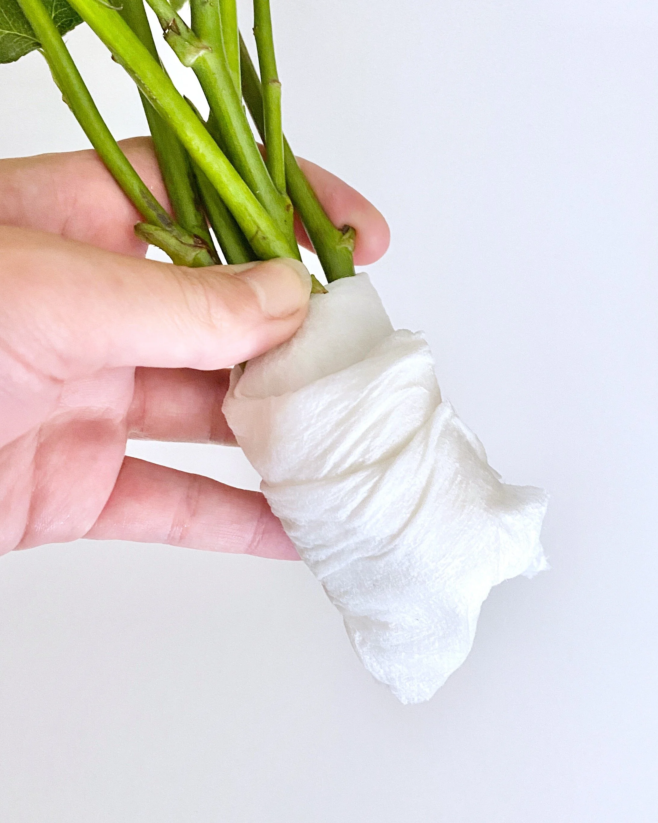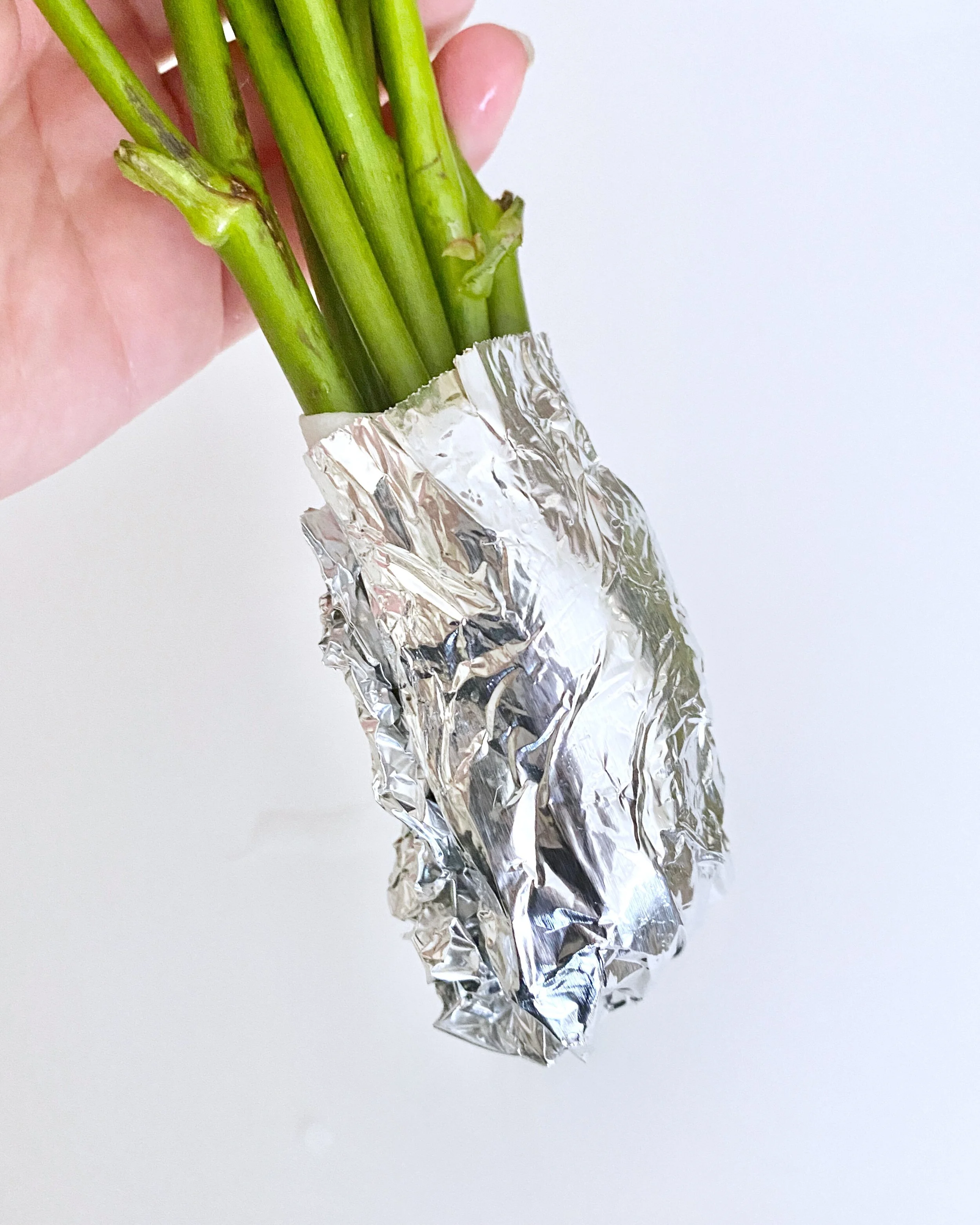 Prepare to wrap the end of your stems with a damp paper towel and aluminum foil.