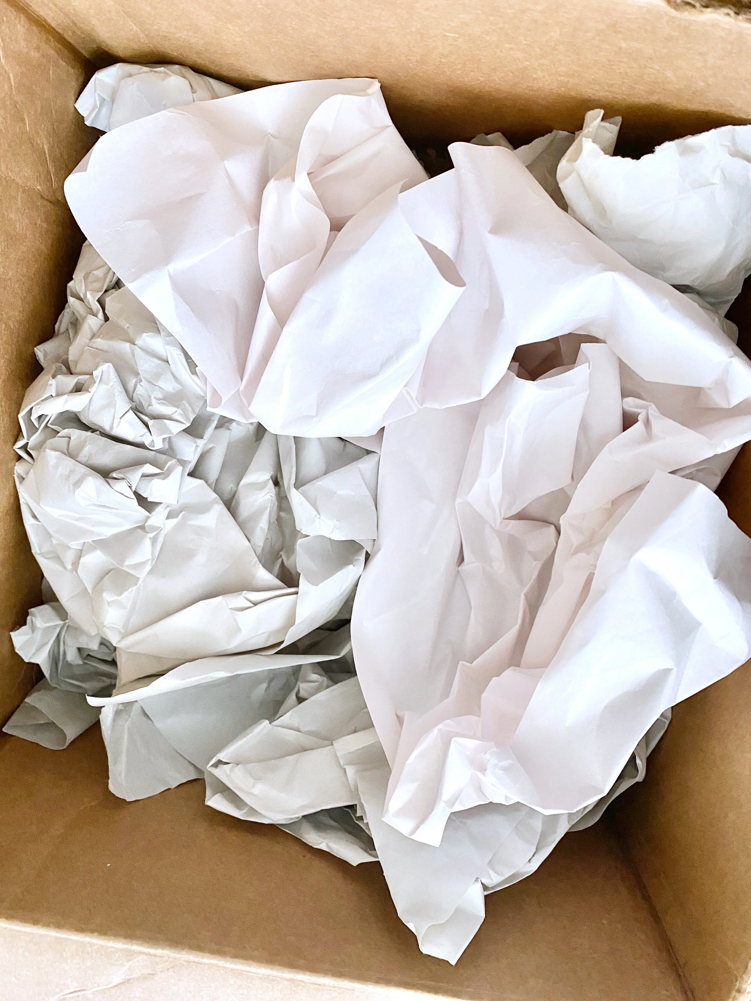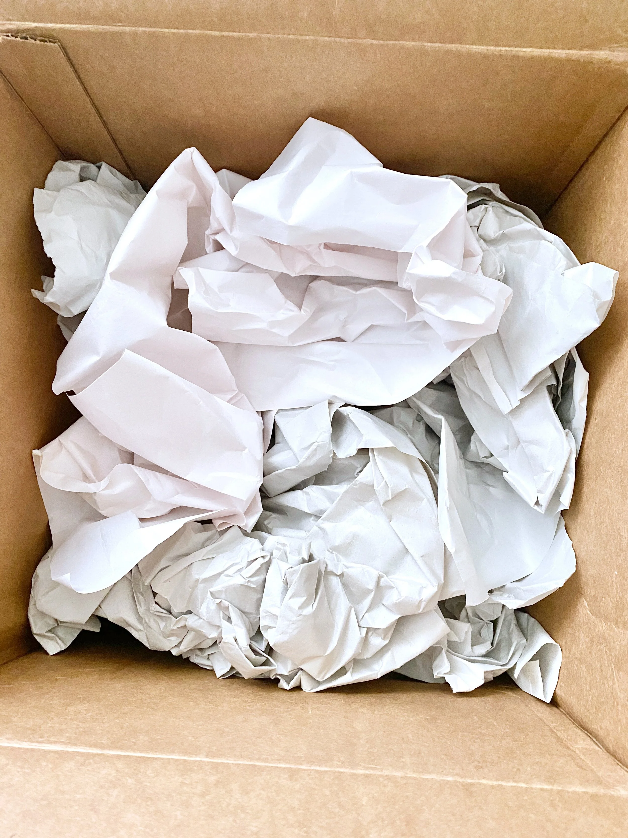 Fill your shipping box with crumpled kraft paper, newspaper, or styrofoam peanuts.